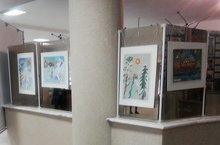 В фойе ГДК преподаватель ДХШ №1 им. И.И.Шишкина Е.В. Трофимова разместила выставку работ своих учеников под название «Новогодние приключения». Дед Мороз со Снегурочкой, нарядная красавица елка, заснеженные пейзажи, радость зимних забав, все это сюжеты работ юных художников. (На выставке представлено 11 работ).