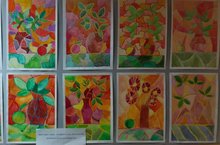 В фойе школы открылась выставка работ учащихся 1ПА и 1ПБ классов "Теплый колорит" преподавателя высшей квалификационной категории Васильевой Н.В.