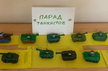 Парад танкистов на выставке в ДХШ №2 устроили учащиеся 7 лет под руководством преподавателя Минеевой Ольги Владимировны. Подарки для пап и дедушек ребята сделали из пластилина.
