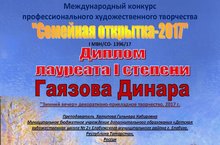 Поздравляем учащихся 1 в класса (преподаватель Хатипова Гульнара кабировна): Гаязову Динару, Сираеву Алину, Фролову Анастасию, Шарафееву Аделю с победой в Международном конкурсе профессионального художественного творчества "Семейная открытка - 2017". Желаем творческих побед и вдохновения.