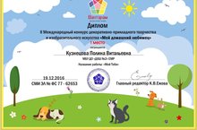 Поздравляем победителя II Международного конкурса декоративно-прикладного творчества и изобразительного искусства "Мой домашний питомец" 04.02.2017