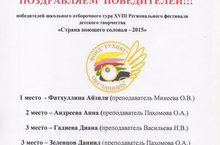 Поздравляем победителей школьного отборочного тура XVIII Регионального фестиваля детского творчества "Страна поющего соловья - 2015"