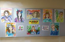 В СОШ №9 оформлена выставка работ учащихся ДХШ №2 "В дружбе народов - единство страны". В своих работах, в технике аппликация, ребята изобразили людей в национальных костюмах.