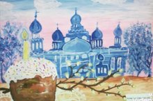 Пасхальным настроением пронизаны работы подготовительных классов (преподаватель Салимова А.М.) Ребята нарисовали пасхальные куличики на фоне пейзажа.