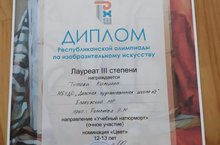Вчера на базе Детской художественной школы №2 г.Набережные Челны прошла олимпиада по изобразительному искусству. Главной задачей мероприятия было выявление юных дарований и перспективно обучающихся в области изобразительного искусства. Состязания проходили по двум направлениям: Учебный натюрморт и Турнир набросков. Мы поздравляем с победой в конкурсе - 3 место - нашу учащуюся Титову Камиллу (преподаватель Романова Р.М.). Желаем творческого вдохновения и дальнейших побед в конкурсах.