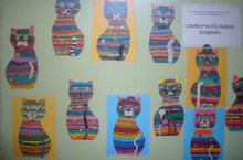 ЗаМУРчательно живут...Яркие, красочные кошки выполненные в технике пластилиновая живопись уютно расположились на выставке работ Б2,Б4 классов (преподаватель Хатипова Г.К.) "ЗаМУРчательные кошки"