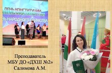 В Елабуге в Центре культурного развития "Созвездие"на мероприятии, посвященному Дню народного единства - "Этот край - наш общий дом" наградили творческих участников Дней культуры Елабужского района в г.Казань. Среди награжденных - преподаватель ДХШ №2 Салимова Амина Минахматовна.