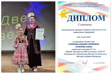On October 24, the regional competition "Two Stars" was held in the CDC "Constellation". Our kindergarten was represented by a duet of grandmother and granddaughter. Alfiya Galimovna and Aziza performed the song "Min tatarcha soylasham" and were awarded a diploma of the 1st degree. Congratulations!
