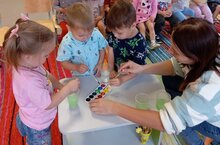 25 октября на базе МБДОУ ЦРР детский сад №38 "Золотой ключик" прошёл республиканский семинар для специалистов и методистов, курирующих вопросы дошкольного образования, управления образования муниципального района Республики Татарстан "Наставничество как способ конструктивного взаимодействия: педагог - педагогу." Семинар прошёл замечательно, было много полезной, живой и интересной практики, детские сады представили разнообразные проекты, открытые занятия. От нашего детского сада открытое занятие "Чудеса микромира" показывала Шаихова О. В. с воспитанники 11 гр. Дети изучали свойства соли, рассматривали различные виды соли в микроскоп и фиксировали данные в карточках наблюдения. В конце дети подарили гостям памятные подарки, а гости поблагодарили ребят и педагога за интересное мероприятие.