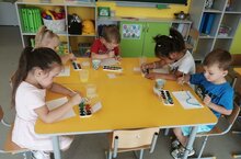 Бүген 1 нче һәм 2 нче төркем балалары белән Брауньда кунакта булдылар. Аның белән бергә геометрик фигураларны (әйләнеш, квадрат, өчпочмак) аера һәм аера белүне камилләштерделәр, төс буенча предметларны (бер үк төрле - төрле, саны, бер, күп, берсе дә, күләме (зур-кечкенә) һәм чагыштыру нәтиҗәләрен тиешле сүзләр белән билгели белүне ныгыттылар.