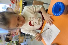 Бүген рәсемдә, без палитра белән таныштык.Балалар бер төснең башка төсләргә әверелүе турында белделәр. Өч төп төсне (кызыл, зәңгәр һәм сары) бутау рәвешендә яңа төсләр алырга була, , ә Ак Һәм Кара төслэр ярдәмендә– башлангыч төсләрне . Бик мавыктыргыч һәм кызыклы үтте .