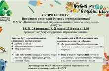 14, 21, 28 февраля, МАОУ Полилингвальный образовательный комплекс "Адымнар-Алабуга" проводит встречу с будущими первоклассниками.