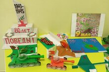 Учащиеся подготовили материалы о подвиге советского народа, а также памятные фотографии и поделки. -