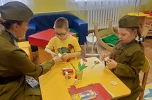 Мальчики лепили военную технику, девочки символы ВОВ: красную ленточку, гвоздику.