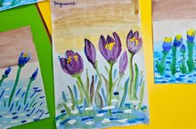 Ребята и сопровождающие родители нарисовали первоцветы - "Крокусы".