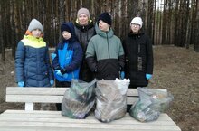 Ребята вышли в Георгиевский парк для сбора мусора. -