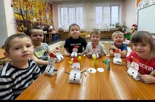 С помощью этого вида искусства воспитанники детского сада выражают свои мысли, эмоции, фантазию, развивают связную речь, мелкую моторику учатся слышать взрослого и взаимодействует с ним.Бүген урта төркем егетләре белән без «күңелле Кар бабай» аппликациясен әзерләдек, бу безнең белем бирү процессында сәнгать – эстетик өлкәнең бик кызыклы төрләренең берсе. Без кәгазьдән кисеп ясалган түгәрәк фигуралардан сурәт төзедек һәм фонга ябыштырдык. Эш барышында балалар предметларның төсе, төзелеше, зурлыгы, яссы формасы һәм композициясе турындагы белемнәрне үзләштерәләр.