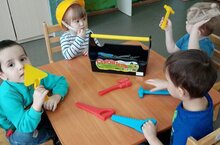 Профессия строителя всегда вызывает у нас уважение и почет. Необходимо с дошкольного возраста поднимать статус строительных профессий, воспитывать уважение к людям рабочих профессий. Воспитатель провела с воспитанниками беседу о строительных профессиях. Дети вместе с педагогом читали стихи, играли в сюжетно – ролевую игру «Строители». Во время игры закрепили названия ручных инструментов строителя.