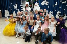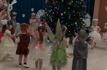 В связи с тем, что группа №1 ещё совсем малыши новогоднее развлечение проходило без родителей. На утреннике дети играли в снежки: бросали и собирали их в коробку, прыгали как зайки, убегали от лисички, и просто наслаждались атмосферой праздника. Ну и какой же новогодний праздник без Снегурочки. Дети вели себя непосредственно: играли и веселились. Они ещё совсем маленькие и только учатся, всё самое интересное у них впереди!