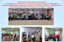 Бүген 38 нче "Алтын ачкыч" балалар бакчасында" Татарстан Республикасының муниципаль районнары мәгариф идарәләренең мәктәпкәчә белем бирү мәсьәләләре буенча белгечләре һәм методистлары өчен"Конструктив үзара бәйләнеш ысулы буларак остазлык" исемле Республика семинары узды.
