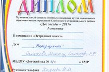 28 ноября состоялся конкурс семейных вокальных дуэтов "Две звезды -2017" на базе ДК "Колос". При поддержки музыкальных руководителей МБДОУ "ЦРР-детский сад №38 "Золотой ключик" ЕМР выступил дуэт "Неразлучные", Салахова Минсылу со своей бабушкой и завоевали 1 место в номинации "Эстрадный вокал".