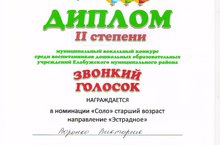 Воспитанница нашего детского сада - Виктория Воронко удостоилась диплома второй степени в муниципальном вокальном конкурсе "Звонкий голосок"! Поздравляем Вику с очередной победой!Так держать!Мы тобой гордимся!
