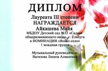 Воспитанница старшей группы нашего детского сада Айкашева Майя стала лауреатом третьей степени в региональном конкурсе "Бэхет йолдызы".