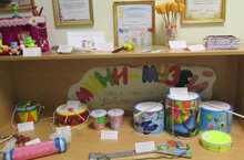 В детском саду прошла выставка самодельных музыкальных инструментов "Музыкальный уголок", изготовленных родителями воспитанников. Целью этой выставки было привлечение родителей к обогащение музыкальных уголков групп. Родители 2,3,4,7,8,9,12 групп приняли активное участие и проявили творческий подход. Силами родителей в группах появились новые инструменты: барабаны, балалайка. ксилофон, пан флейта, маракасы, музыкальные шумелки, бубен, музыкально-игровой центр.