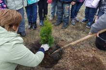В акции принимали участие дети, воспитатели и родители. Ребята могли наблюдать и участвовать в посадке деревьев с самого начала: выкопать ямку, опустить корешки дерева в ямку, засыпать землей, полить.