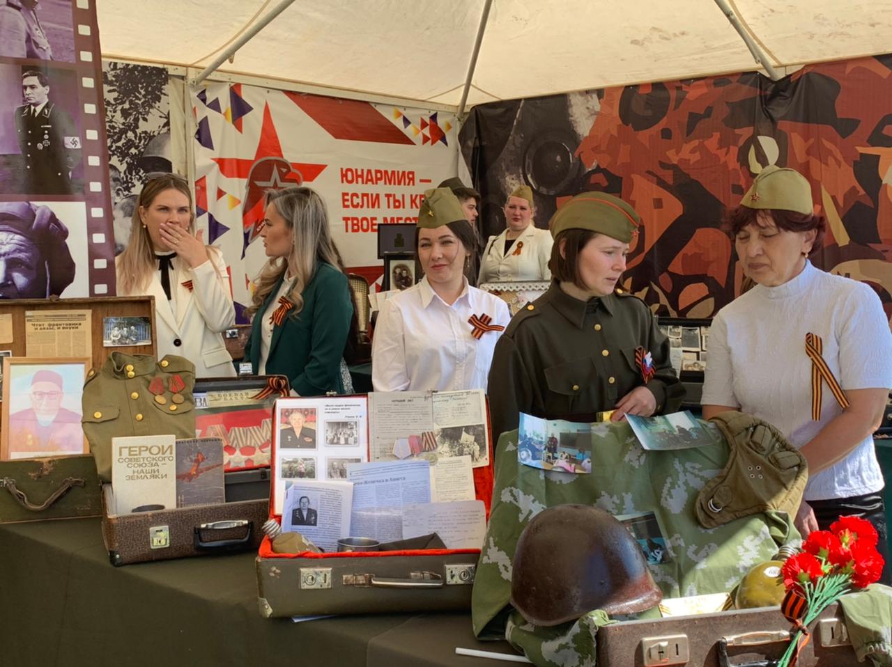 9 мая на стадионе «Молодёжный» были установлены столы, на которых разместились экспонаты разделов выставки: «Солдатский быт», «Награды Великой Отечественной войны», «Документы и фотоматериалы времен войны», «Память о прошлом храня».