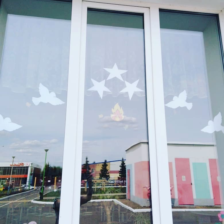 9 Май-Җиңү көне. Иң зур һәм шатлыклы бәйрәм. Бөек Ватан Сугышында катнашучыларга рәхмәт әйтү, аларга "батырлык һәм чыдамлык өчен рәхмәт" - безнең балалар бакчасы «Җиңү тәрәзәләре»акциясендә катнашты. «Җиңү тәрәзәләре» акциясе - Хәтер һәм Дан елының төп чараларының берсе. Безнең балалар бакчасы хезмәткәрләре бу акциядә актив катнаштылар. Без тәрәзәләрне Мәңгелек ут, йолдызлар, Георгий тасмалары, котлау язулары һәм Ак Журавльләр белән бизәдек.