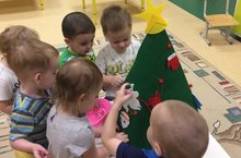 В нашей группе поселилась маленькая ёлочка, но необыкновенная, а из фетра. Мы решили украсить её вместе с детьми. Такая ёлка - отличная развивающая игрушка: расширяет словарный запас детей, проговаривая названия игрушек, сортировали их по различным признакам, развивали мелкую моторику и сенсорику ручек малышей.
