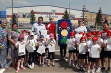Тәрбиячеләр госавтоинспектор хезмәткәрләре белән бергәлектә мәктәпкә хәзерлек төркеме балалары белән юл йөрү кагыйдәләрен кабатлауга багышланган “Күңелле Сфетофор” күңел ачу чарасы үткәрделәр.