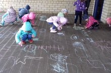 Рисование на асфальте – это очень увлекательное занятие во время прогулки, но самое главное, эта деятельность создает хорошее настроение и радость от собственных «шедевров».