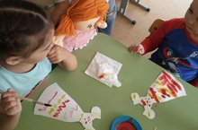 Сегодня к ребятам первой младшей группы пришла в гости кукла Ганя. Она хотела прийти в красивом и нарядном платье. Но Ганя такая капризная девочка-ревушка , что все её платья стали мокрые и грязные.Она попросила ребят сделать и украсить ей новую одежду.Дети удивили ее,создав для Гани новый гардероб.