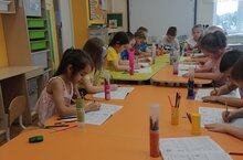 So, the guys from the second junior group had a lesson on applications with drawing elements. On the topic: "A stream and a boat".