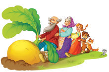 The children put on masks with the image of vegetables, and "turned" into vegetables in the garden. The grandmother collects "tops", and the granddaughter collects "roots". Then the vegetables collected by the grandmother and granddaughter call themselves "root" or "top".