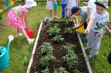 Җәй-табигатьнең якты төсләре белән тулы, балаларга зур танып-белү дөньясын бүләк итүче Елның иң матур чоры! Һәр көн саф һавада булу, балалар табигатьне өйрәнәләр, әйләнә-тирә дөньяны аның табигый, реаль матурлыгын тоеп яшиләр. Әгәр без табигатьнең бөтен матурлыгын уку елы дәвамында таныштырып, балаларга рәсемнәрдә, табигать почмагында әйләнә-тирә дөнья буенча видео дәресләрендә күрсәтсәк, хәзер алар үзләренең тикшеренү активлыкларын танып, үз бакчаларында сәяхәттә экспериментлауларын дәвам итәләр. 12-нче номерлы төркем балалары май аенда кечкенә генә бакча ясадылар һәм помидор һәм борыч үсентеләрен утырттылар. Аларны көн саен карыйлар, ягъни су сибәләр, чүп үләннәрен җыештыралар һәм үсешне күзәтәләр. Мәсәлән, бүген балалар помидорның чәчәкләрен күрделәр. Алар чәчәкләрне озак карадылар һәм корылманы ныгыттылар. Кызлар һәм малайлар тиздән үз помидорларының барлыкка килүенә бик шат иделәр.