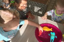 Ә бездә кечкенә сабыйлар! Безнең балалар бакчасына йөри башлауның беренче көненнән үк тәрбиячеләр балалар белән төрле уеннар оештыралар. Су белән уеннар - аеруча кызыклы һәм мавыктыргыч шөгыль.