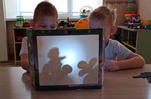 Воспитанники группы №10 «Непоседы» с интересом не только посмотрели теневую сказку «Колобок», но и попробовали себя в роли сказочников - с помощью силуэтов показали друг другу сказку.
