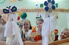 Без бу көнне атна буе көттек! Янача гәүдэлэнеш, уеннар - бу бары тик "Театр конендэ!" Дүшәмбе көнне, без " Әкияттэ кунакта" дигән мавыктыргыч әңгәмә уздырдык. Яраткан геройларыбыз һәм аларның гамәлләре турында сөйләштек. Иллюстрацияләр карау, төрле костюмнар, битлекләр кулланып, балалар үз-узлэрен актерлар ролендэ хис иттелэр. Сишәмбе көнне, күрсәтү өчен әкият сайладык. Күп булды тәкъдимнәр, әмма без уртак карарга килдек! Чәршәмбе көн - репетиция көне. Җиңел булмады! Без шигырьләр, җырлар өйрәндек, тавышларга охшату рэвешен китердек, бер сүз белән әйткәндә, «рольгә кердек». Һәм менә бу дулкынландыргыч вакыт килеп тэ җитте. Актерлар әзер, залда тамашачылар, музыка яңгырый... Безнең алда яраткан әкият геройлары «Мәче, Әтәч һәм төлке!». Балалар бик яхшы уйнадылар, тамашачылар көчле алкышларга күмде. Барысы да бик уңышлы утте!