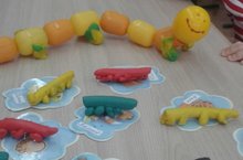 Продолжаем экспериментировать с пластическими материалами! Сегодня мы освоили новый способ лепки –катание в ладошках цилиндрических предметов и вылепили веселого червячка-сороконожку, с которой поиграли в пальчиковую игру «Сороконожки бегут по дорожке». Пальчики нас уже слушаются, и мы можем похвастать нашими «шедеврами»!