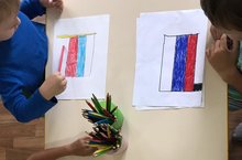 Ел саен 22 нче август көнне безнең балалар бакчасында тәрбияләнүчеләр Россия Федерациясенең Дәүләт флагы көнен билгеләп үтәләр. 4 нче номерлы мәктәпкә әзерлек төркеме балалары Россия флагының барлыкка килү тарихын искә төшерделәр, флагның төсләре нәрсәне аңлатуын белделәр, Россия Федерациясенең гербы рәсемен карадылар.