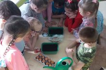 Урамда әле салкын, һәм җир кар белән капланган. Шундый вакытта тәрәзә төбендә яшел үсентеләрне күрү бик күңелле. Менә 3 нче номерлы төркем балалары да, суган кыяклары үстерү аларның көченнән килә, дигән карарга килделәр.