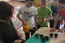 Дети группы № 4 «Подсолнушки» увлеклись весенними заботами. Они решили посадить разные виды зелёных салатов. Для выращивания рассады каждый ребёнок принёс горшочек с почвой и семена.