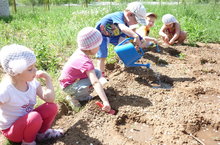 Наступили теплые деньки, а это значит, что огородная пора в самом разгаре. Ребята из группы №8 на своей грядке посадили кабачки, которые теперь радуют их своими выглянувшими листочками.