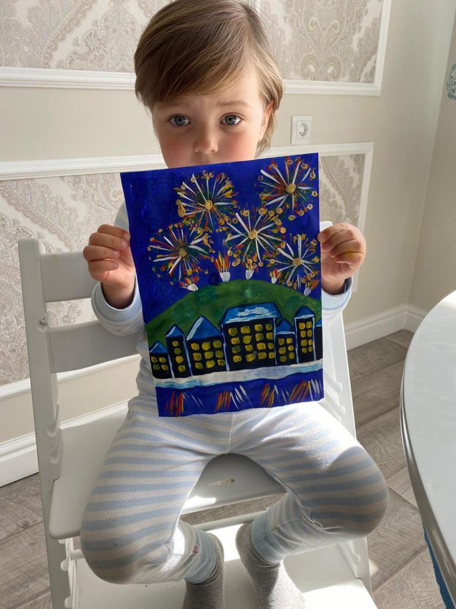 Опубликовано: 24.04.2020Җиңү бәйрәме үзгәрешсез, яраткан булып кала. Бүген дә 3нче төркем "Җиңү салюты" дигән акцияне дәвам итә. Балалар һәм ата-аналар рәсем конкурсында актив катнаштылар. Менә шушы сабый рәсемнәре безнең йөрәкләрдә Ватан өчен һәм ветераннарыбыз өчен зур горурлык хисләре тудырыр дип ышанабыз.