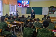 7 ноября на базе МБОУ «Средней школы №3» ЕМР РТ педагог Центра детского творчества Киселев С. В. для учащихся кадетского класса провел беседу с просмотром видеофильма «Отстояли Москву, отстоим и Россию»