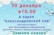Балалар өчен уенга караганда да кызыграк һәм мавыктыргычрак нәрсә юк. Бигрәк тә, әгәр бу уенда бер станциядән икенчесенә йөгерергә, төрле биремнәр үтәргә кирәк булса. Бүген, 30 декабрь көнне "Александр бакчасы" паркында шау-шулы һәм күңелле булды! Балалар экология - биология үзәге хезмәткәрләре әзерләгән «Кышкы әкият» дигән мавыктыргыч квестта катнаштылар. Станцияләрдә балаларга тере чыршыга әверелеп, әйлән-бәйләндә яңа ел җырын җырларга, барлык күркәләрне вакытында чиләкләп җыярга, тылсымлы шар әзерләргә һәм, Кар бабай костюмын киеп, фонтанга кадәр йөгерергә һәм "Яңа ел белән" дип кычкырырга " кирәк иде. Һәр команда, ә алар биш иде, башкарылган биремнәрдән соң, финишта үзләренең яңа ел чыршыларын бизәделәр. Ура!!! Җиңү маршы яңгырый! Квест тәмам. Барлык катнашучылар да күтәренке кәеф һәм бик күп уңай эмоцияләр алдылар.