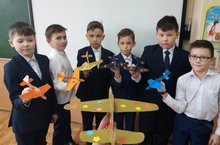 Ватанны саклаучылар көне уңаеннан "Иҗат калейдоскобы" берләшмәсе укучылары әтиләренә бүләк өчен самолетлар ясадылар .